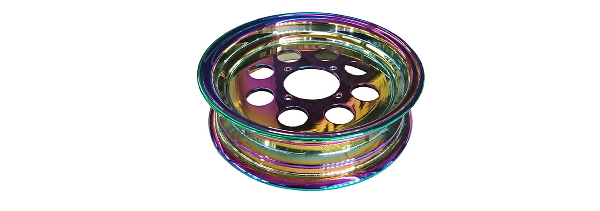 Automotive parts coated with exclusive colors PVD Titanium coating.
