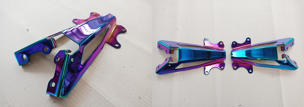 Beautiful color of rainbow coated on motorcycle parts Here is…