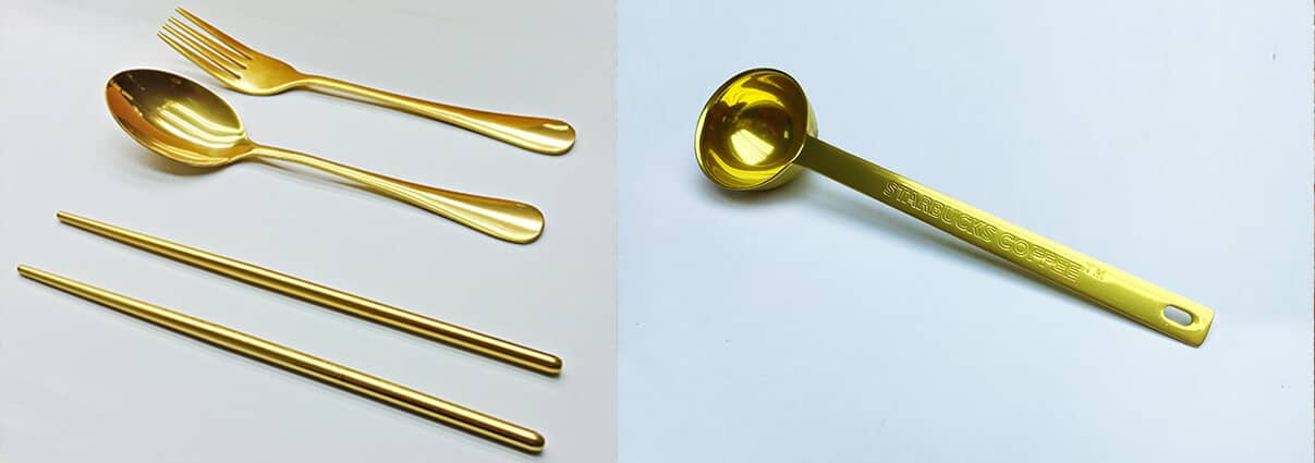 Utensils in luxury gold color (Titanium Nitride). PVD Hard Coating…