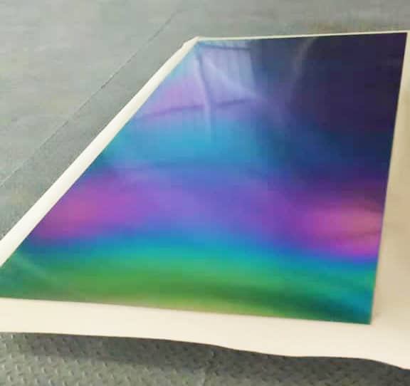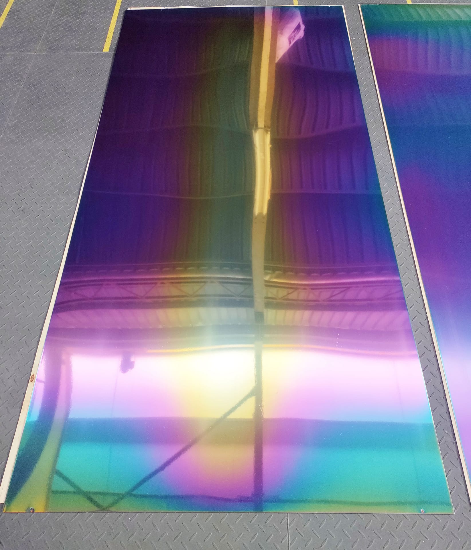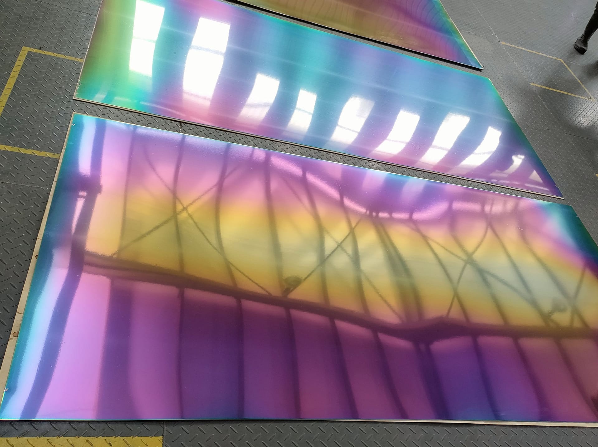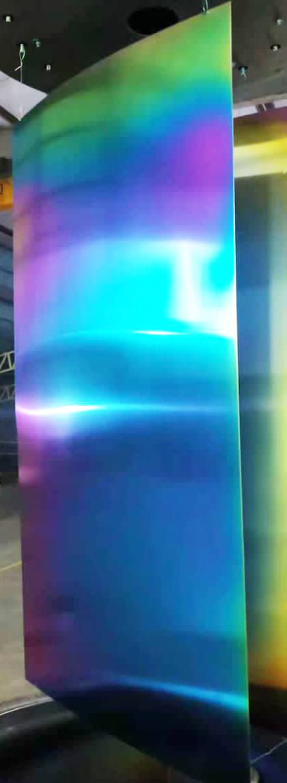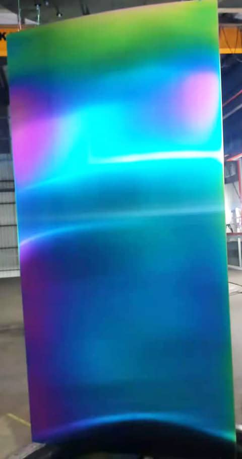 Rainbow color on stainless steel surface (plate) applied by technology of Physical Vapor Deposition (PVD). This surface treatment is suitable for interior equipment and decoration for hotels, villas, shopping mall and etc. If you interested to decorate your product with colorful and unique looks, please don’t hesitate to contact us for #pvdcoating works. For more details and information, please contact us.